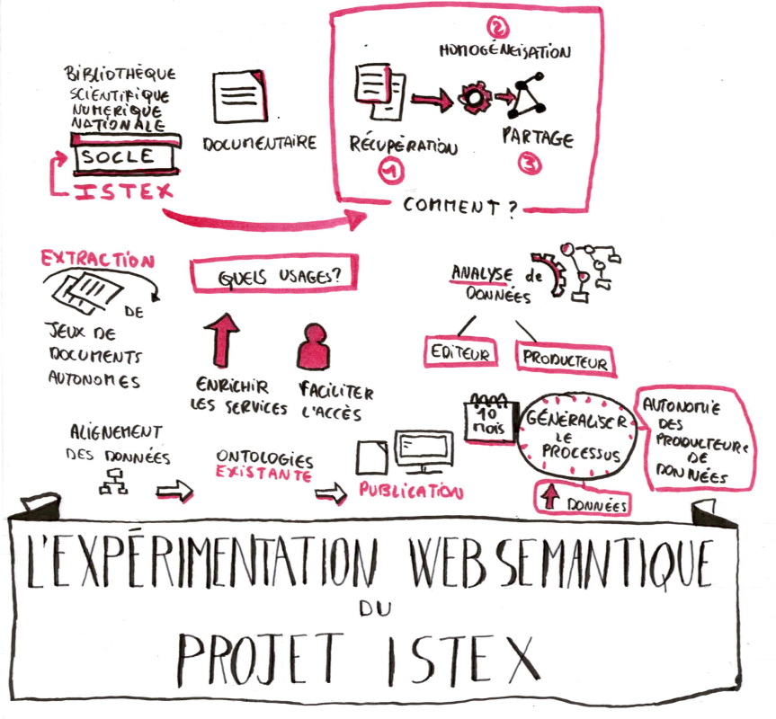 Le projet ISTEX est un investissement d'avenir soutenu par l’Agence Nationale de la Recherche visant à doter la France d'une bibliothèque numérique scientifique reposant sur deux axes complémentaires : d'une part, une acquisition massive de publications scientifiques (17 millions) couvrant l'ensemble des disciplines et d'autre part, la mise en place d'une plateforme unique d'hébergement, de gestion et d'accès à ces ressources. En janvier 2016, l’InistCNRS a lancé une expérimentation visant à publier, selon les normes du web sémantique, des données extraites du projet ISTEX. Cette expérience vise à développer une méthode pour mettre en ligne des jeux de données dans le respect des normes et standards du W3C. L’objectif est de répondre aux demandes des documentalistes et des chercheurs, en utilisant la structuration sémantique comme un moyen pour répondre à plusieurs besoins :